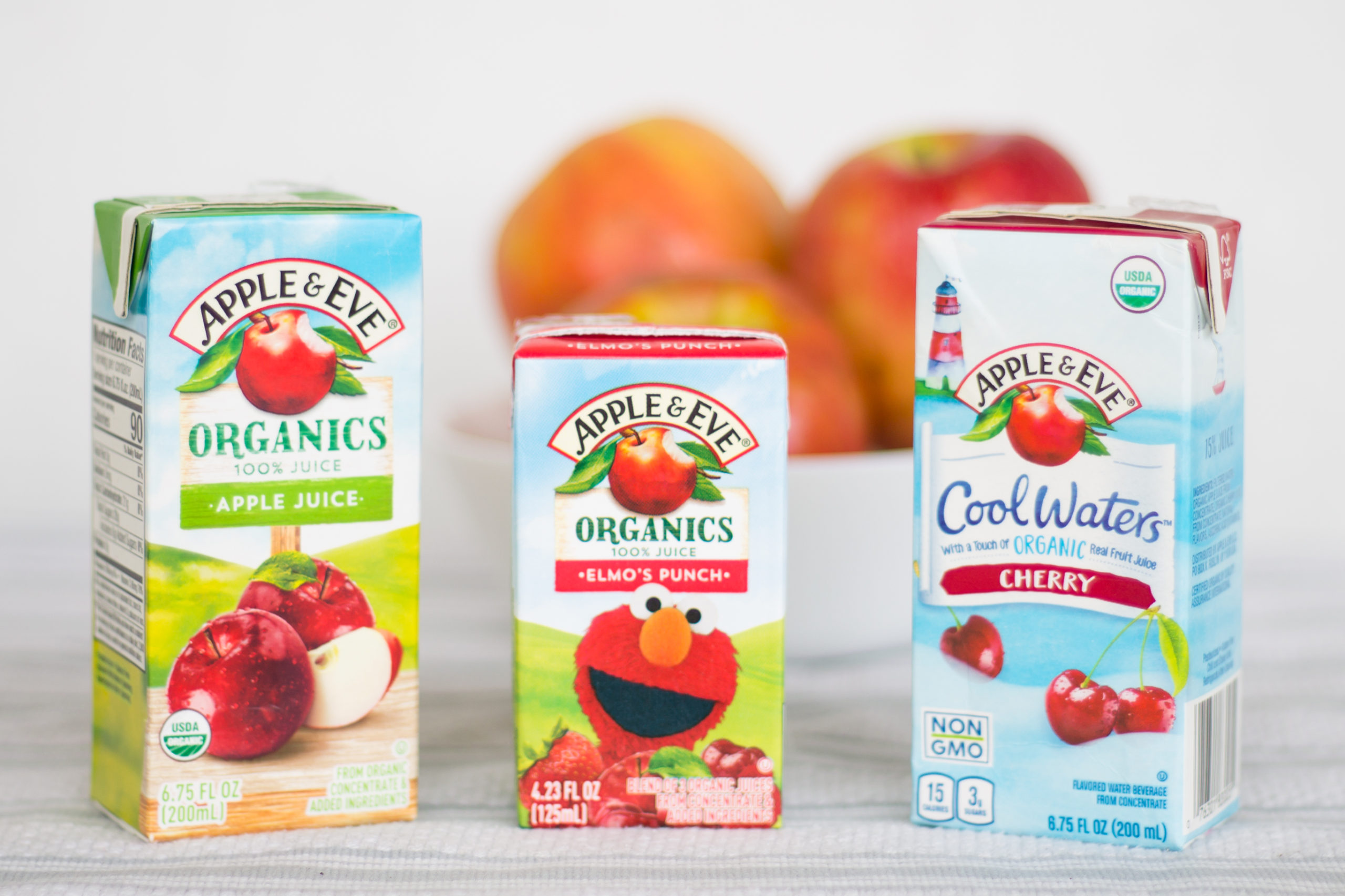 The products I received from Apple & Eve included: Cool Waters, Elmo’s Punch, and Apple Juice. Each drink contains flavors derived from organic juices with no added sugars. I like that the Cool Waters drinks contain only 3 grams of sugar per each